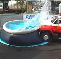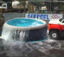 Sofpool is constructed of a 64mm reinforced vinyl with a multidirectional nylon weave (this is the same material found in racing and NASCAR type tires). See how tough Sofpools are by watching the video below. If you don't want to wait to download the videos, there are still scenes below as well. Notice, the video is a very large file (42.3megs), plan on a considerable download time.